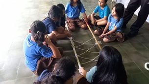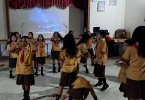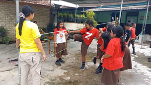Keseruan berlanjut di aula sekolah. Melalui permainan “Moving Body” dan “Trust Your Friend”, tawa pecah saat anak-anak belajar bahwa dalam sebuah regu, kepercayaan adalah kunci utama.