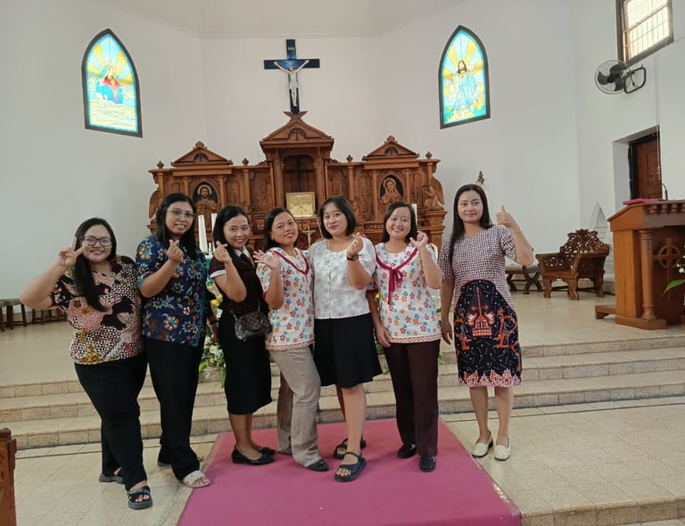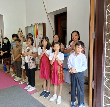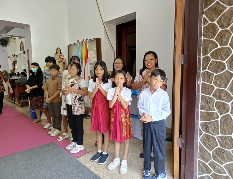 Pada hari Minggu, 10 November 2024, sejak pagi anak-anak SDK Santa Maria telah berbaris rapi dengan senyum hangat untuk menyambut umat yang datang. Di moment yang hikmat ini, siswa belajar untuk mengambil peran menjadi petugas, bertanggung jawab melaksanakan tugasnya dan bersikap sopan di dalam gereja. Siswa-siswi tersebut tidak sendiri, namun didampingi oleh beberapa guru yang menjadi panutan bagi siswa dalam menjalankan tugas mereka. Dengan sikap yang sopan dan penuh hormat, mereka menunjukkan bagaimana seharusnya melaksanakan tugas serta beribadah dalam gereja.