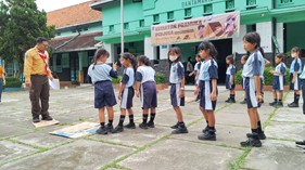 Meski langit Blitar sedikit mendung, semangat anak-anak tidak surut sedikit pun. Karena halaman yang basah, apel pembukaan dialihkan ke aula sekolah. Dengan tertib, siswa kelas 1, 2, dan 3 memulai upacara, sementara siswa kelas 5 dengan sabar menanti giliran. Kedisiplinan ala Pramuka benar-benar ditunjukkan sejak menit pertama!